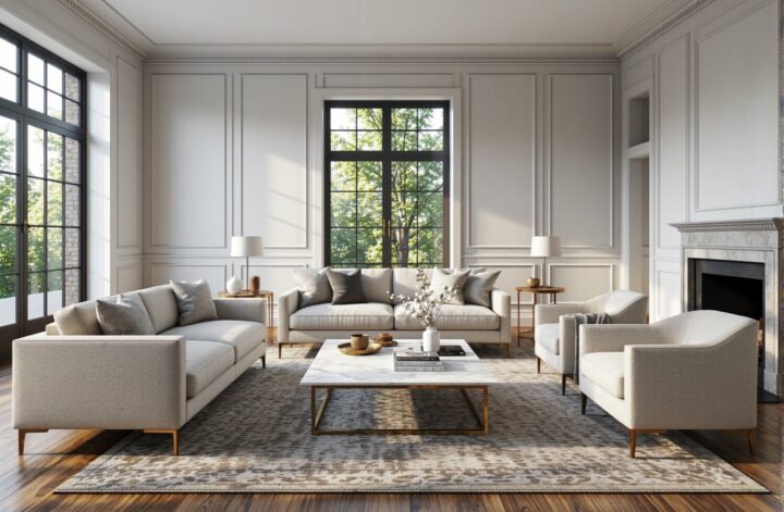 Jeśli marzysz o wnętrzu, w którym meble są niemal niewidoczne, postaw na wnęki (po japońsku „nuki”). Zabudowa regałowa zintegrowana ze ścianą to kwintesencja minimalizmu. Półki wykonane w tym samym kolorze co ściana stają się jej integralną częścią, tworząc idealne tło dla eksponowanych przedmiotów. Taka zabudowa może wypełniać całą ścianę lub tylko jej fragment, na przykład przestrzeń wokół kominka czy drzwi. Wnęki to doskonały sposób na maksymalne wykorzystanie przestrzeni bez jej optycznego pomniejszania. Podświetlenie półek delikatnym światłem LED doda im głębi i stworzy subtelny, nastrojowy efekt po zmroku.