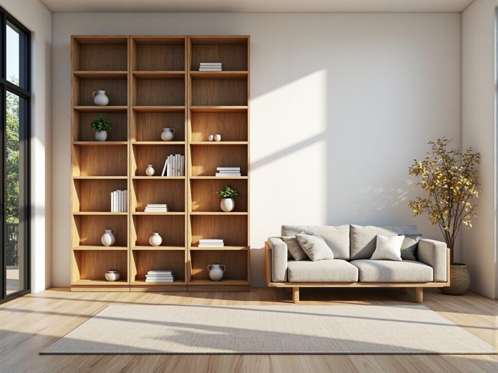 10 inspiracji na wnętrza z funkcjonalnymi regałami w stylu japandi