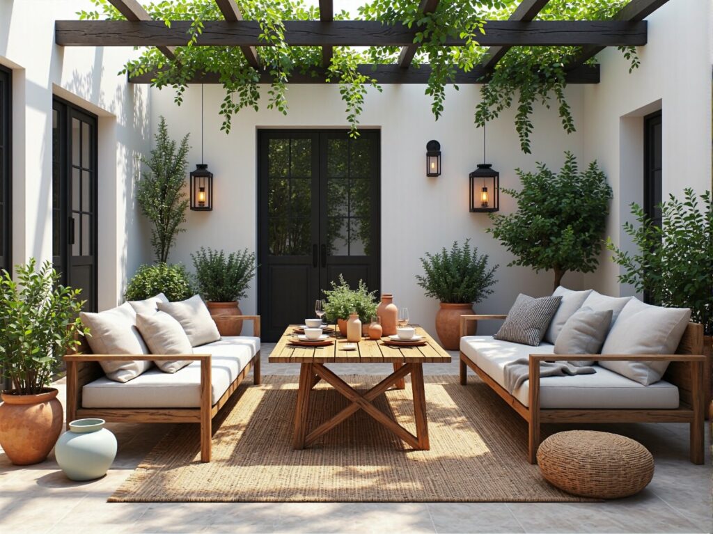 • Roślinność: Jest absolutnie niezbędna. Bujne, często pnące się rośliny w glinianych donicach to znak rozpoznawczy tego stylu. Lawenda, oliwki, cytrusy, bugenwille, rozmaryn i tymianek nie tylko zdobią, ale także wypełniają powietrze wspaniałym aromatem.